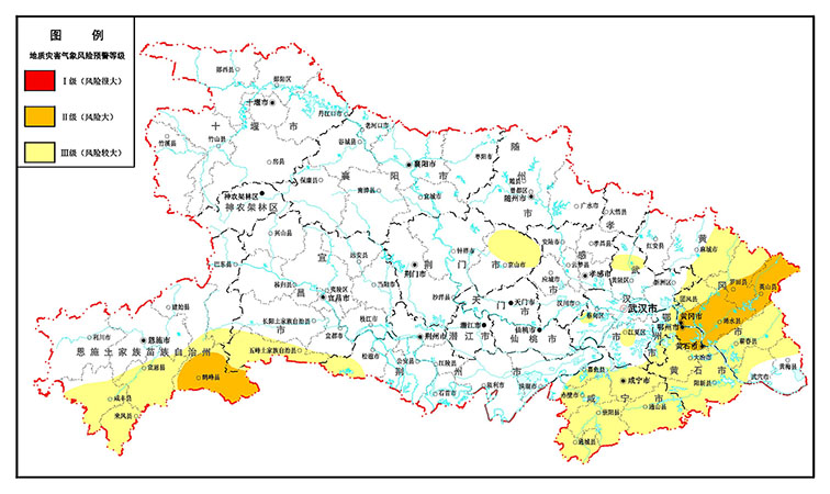 荆楚网客户端一荆楚网消息(通讯员 杜琦)7月7日,湖北省自然资源厅发布最新一期地质灾害气象风险预警:2020年7月7日20时-7月8日20时,预计鄂州市、黄石地区、咸宁地区,恩施(巴东南部、建始南部、宣恩、咸丰、来凤)、宜昌(五峰)、荆州(松滋)、荆门(京山北部)、武汉(黄陂中北部、新洲东部、蔡甸西部、江夏中部)、黄冈(麻城东部、罗田北部、团风、蕲春、武穴西部和北部、黄梅北部)以及其他暴雨中心发生崩塌、滑坡、泥石流的风险较大(Ⅲ级),请相关地方政府及有关部门做好地质灾害防范工作;其中,恩施(鹤峰)、黄冈(黄州区、罗田南部、英山、浠水)、鄂州(鄂城区)、黄石(黄石市城区)发生崩塌、滑坡、泥石流的风险大(Ⅱ级),请相关地方政府及有关部门加强地质灾害防范,做好应急准备工作。