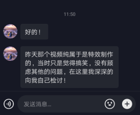 网友“玖~哥”在私信中自我检讨。