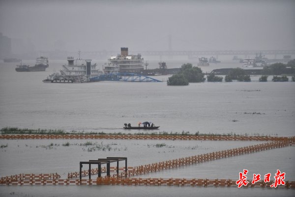 长江网7月7日讯 7月7日,长江汉口站水位已超27.30米警戒线,汉口江滩芦花观景栈道已被江水漫过,过江轮渡全线停航,汉江各个闸口也已封闭。提醒市民避免去江边游玩逗留,注意人身安全。 (记者苗剑 喻志勇 摄影报道)