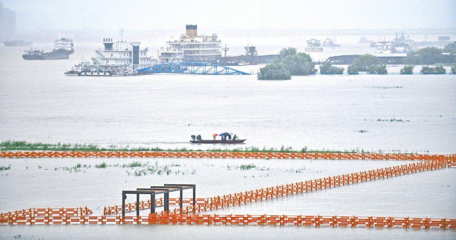 7日17时,汉口站水位27.42米,已高于武汉平均地面高程3米多。在汉口地区,汉口江滩的二级平台已被江水淹没。