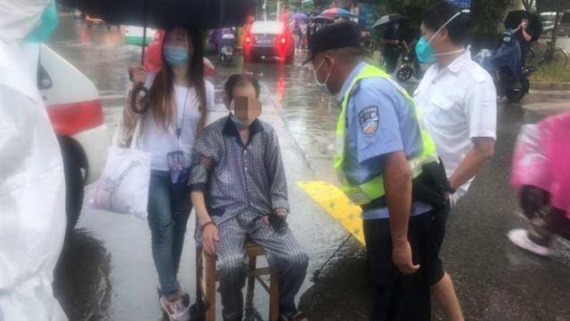 今天上午8时30分许,天还下着大雨。从事餐饮业的市民张先生来到起义门生鲜市场采购,在六八三小区门口看到一位老人腿脚哆嗦,正被一位女士扶起,女士帮忙撑着伞。张先生帮忙报了警,见女士扶着有些吃力,他还搭了把手。正当张先生和好心人准备把老人扶到花坛边坐下时,小区门口有人帮忙拿了一把靠椅,让老人坐下休息。