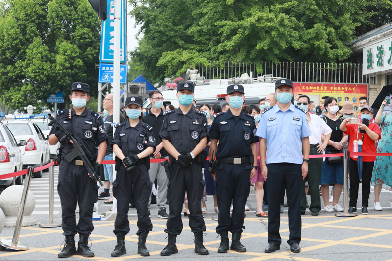 为进一步做好2020年高考安保工作,切实加强高考期间全市社会秩序安全稳定,按照襄阳市公安局统一部署,襄阳特警提前谋划、周密部署、全员上阵,共投入警力150余人,车辆20余台,编成18组安保小组,投入全市16个高考点,为高考工作保驾护航。