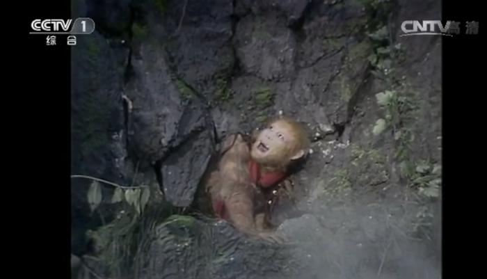 《困囚五行山》一集,孙悟空被压在五行山下。图片来源:82版《西游记》视频截图