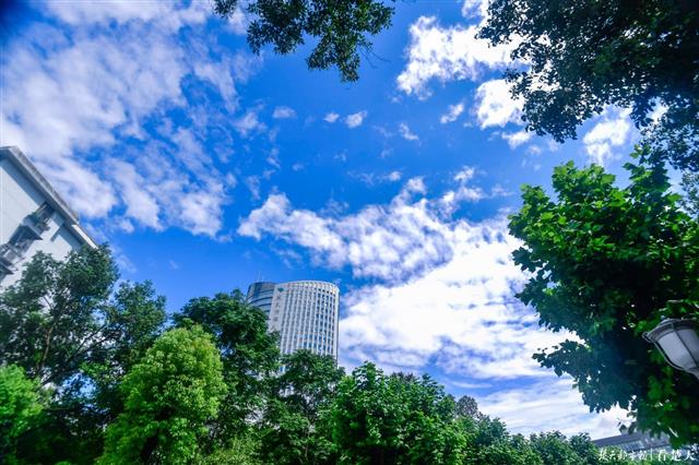 楚天都市报7月8日讯(记者石倩 李辉 通讯员于海涛)湛蓝的天空,纯白的云朵,今日,雨过天晴,武汉出现了油画般的好天气。