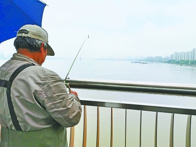 杨泗港长江大桥上垂钓的市民。