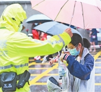 高考期间,武汉市教育、水务、卫健、公安、城管、供电等单位联合办公,全力护航雨中高考,志愿者、爱心人士纷纷自发加入。