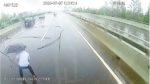 见此情景,肖胜保连忙临时停车,左手打伞,右手徒手将9根水管陆续搬到路边安全地带。随后,他又一路快跑返回车上继续行驶。车载监控视频显示,从肖胜保起身下车到返回车上,前后用时仅90秒。“当时雨下得很大,有些水管两端都被过路车辆圧得翘起来了,来往车辆稍有不慎,很容易发生意外!”肖胜保说。