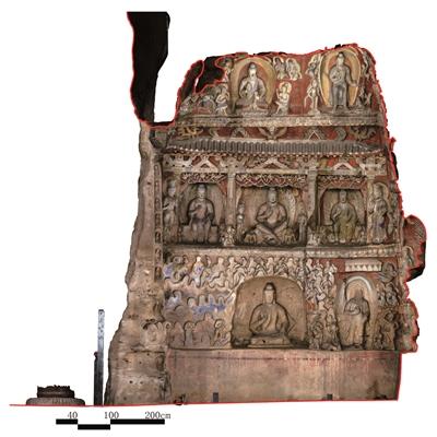云冈12窟前室西壁正射影像图,原真的形色信息记录后的数字化测图