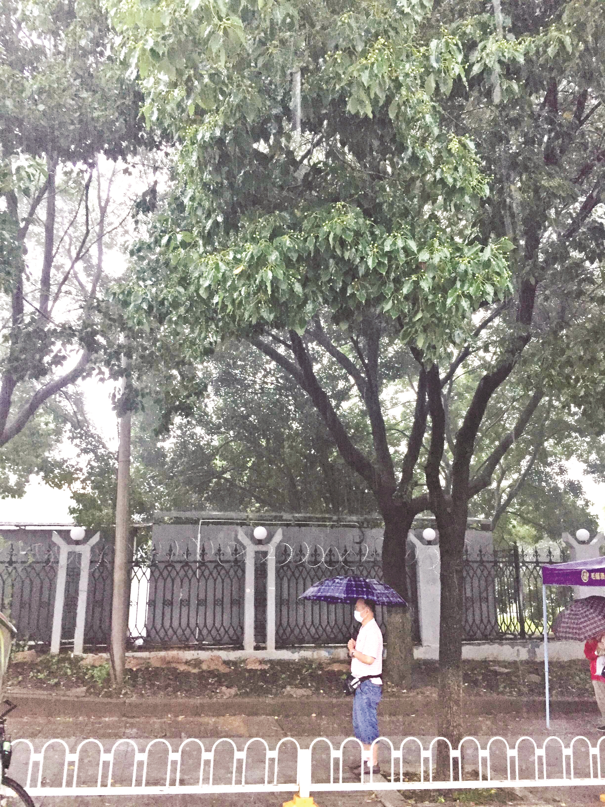 殷先学独自撑伞在考点外守望