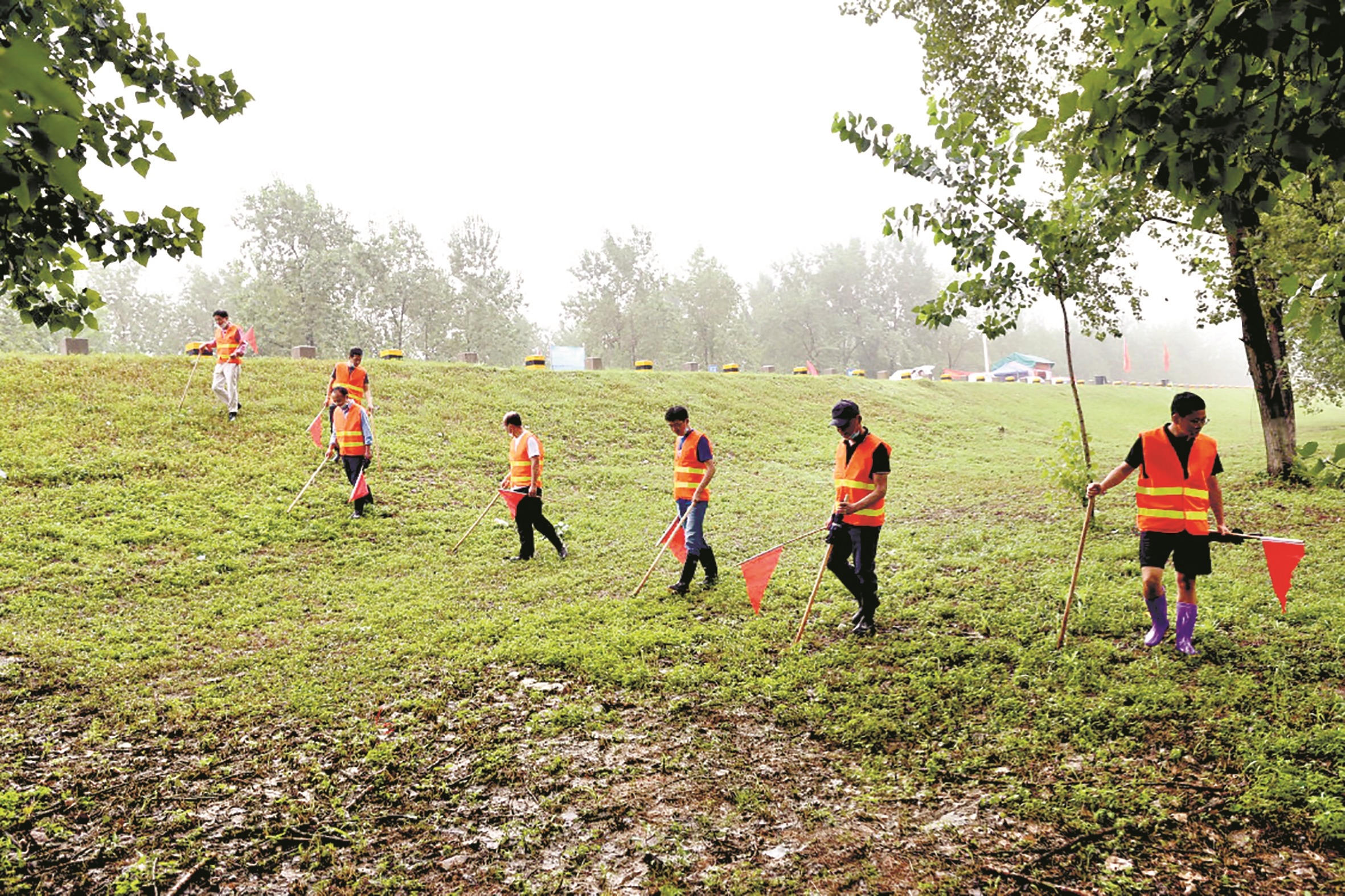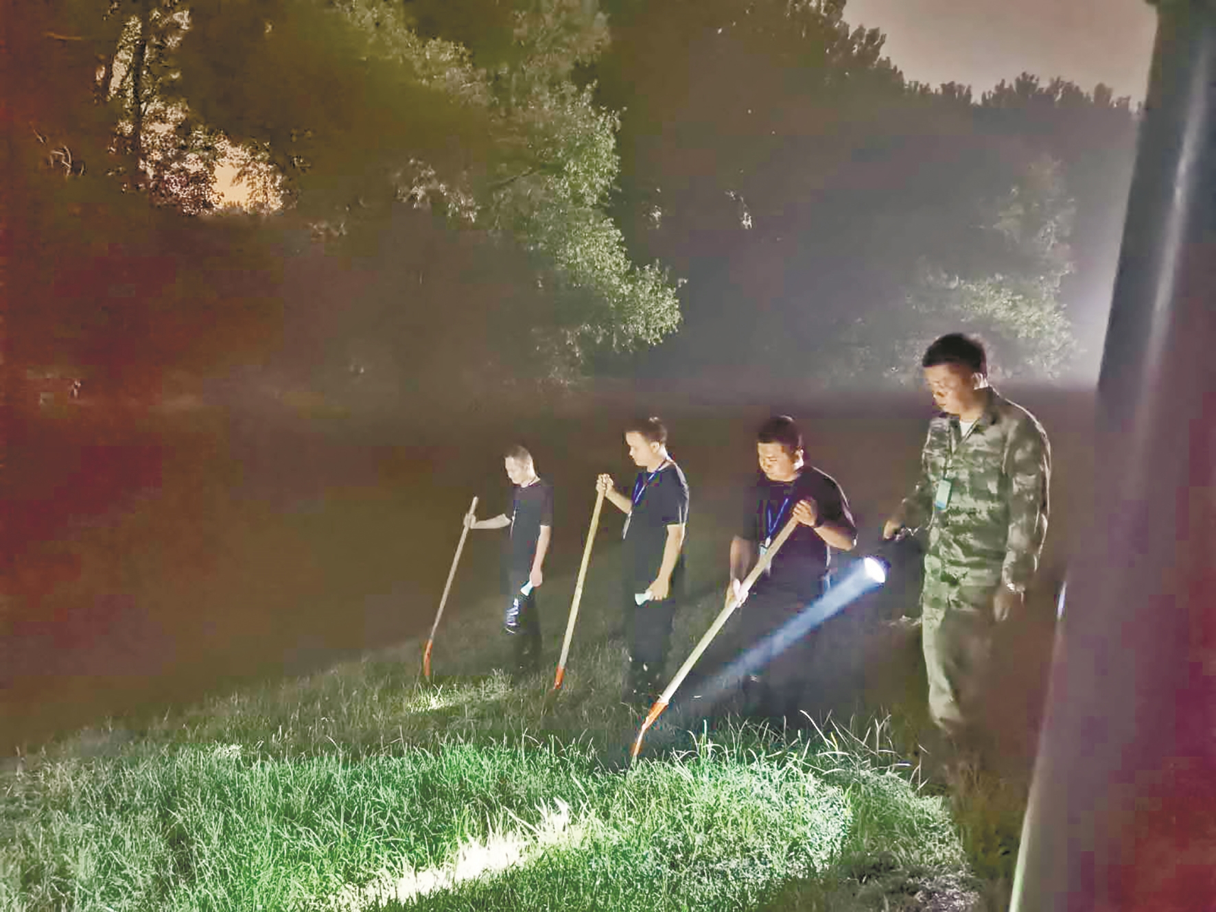 手拿木棍、脚穿雨靴,按照标准成横排前进,谁会想到这7名巡堤人都是农学博士。