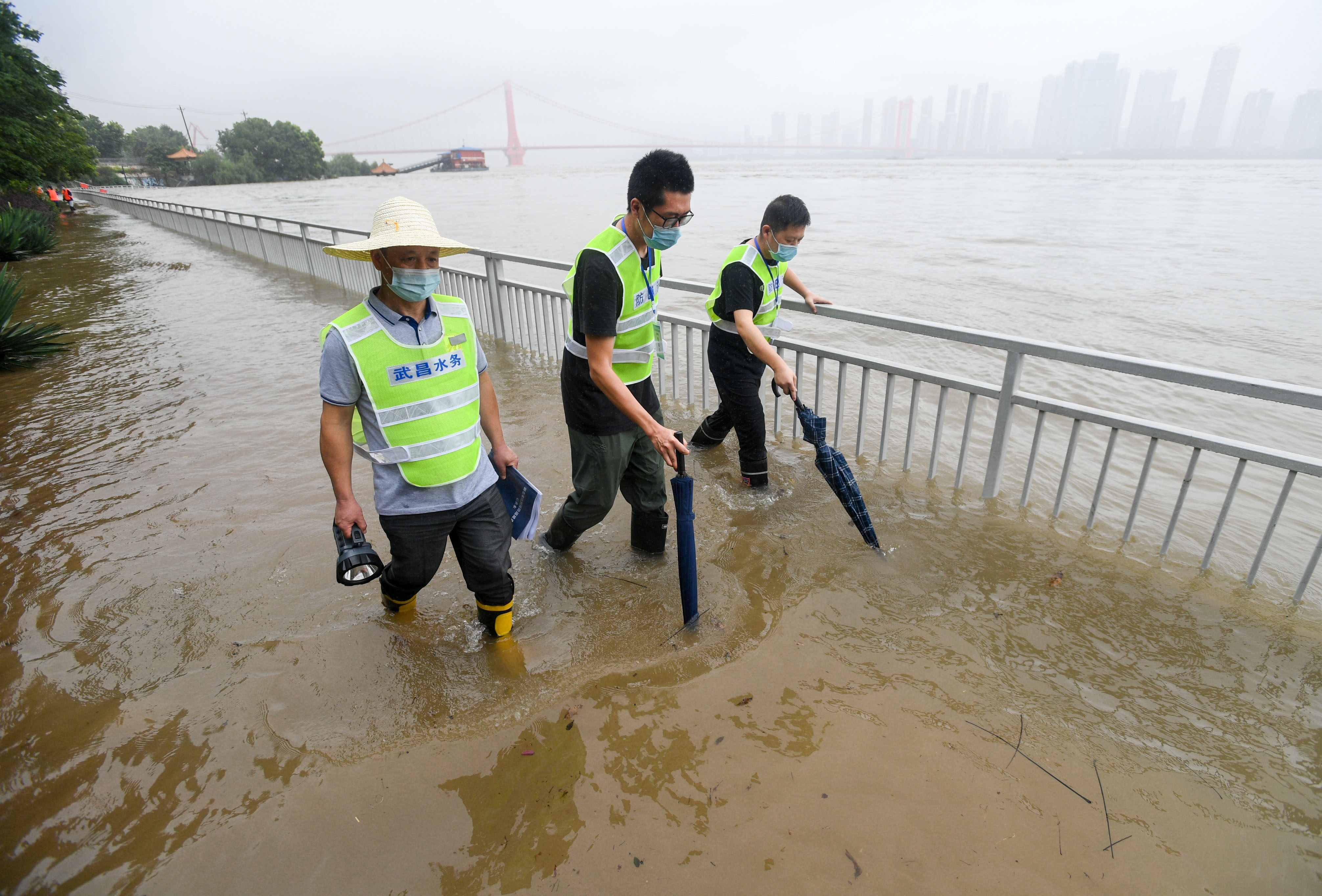 洪山区防汛指挥部相关负责人介绍,武金堤全长15.7公里,其中杨泗矶险段曾发生多处管涌险情,是重点险段。7月5日武金堤防汛分指挥部紧急部署,洪山辖区9个街道分管堤段及巡堤查险人员上堤值守,设置哨棚53个。截至昨日上午10时,武金堤累计近2000名干部群众上堤巡查。
