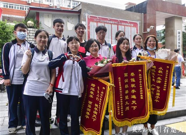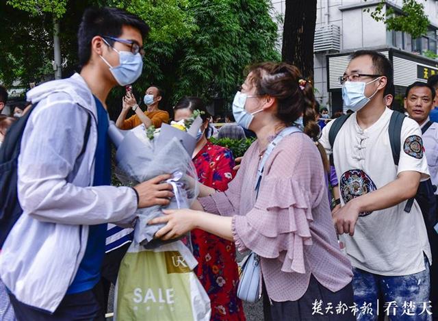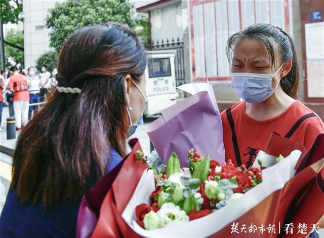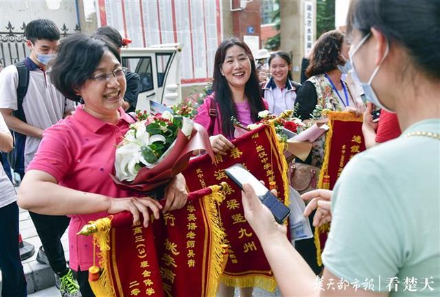 记者在水果湖高中考点看到,不少考生带着轻松的表情走出考场,家长们热情相迎,还有些家长是把准备好的鲜花送到自己的孩子的手中,他们此刻都比较激动。武汉中学的考生家们,还为老师准备了锦旗,表达众家长对老师辛勤劳动的感激之情。