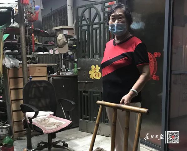 岳转花老人从家里搬出板凳。长江日报记者姚传龙 摄