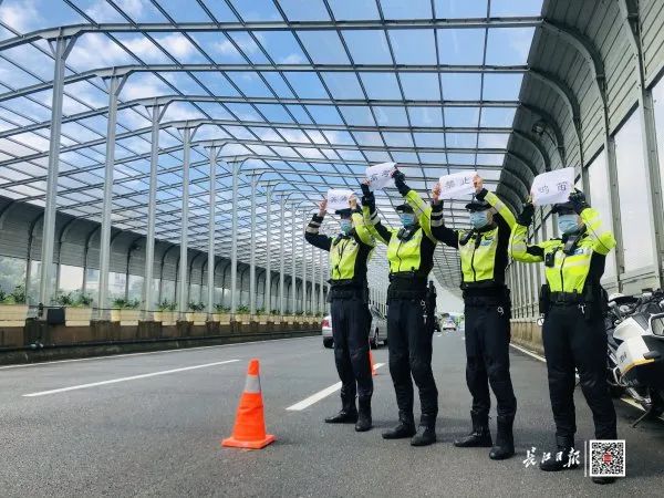 8日下午,高考英语考试开始前15分钟,喻家湖高架、雄楚高架上,数名交警手举“高考英语 禁止鸣笛”标语,示意过往车辆禁鸣、减速缓行。通讯员詹晓静 摄
