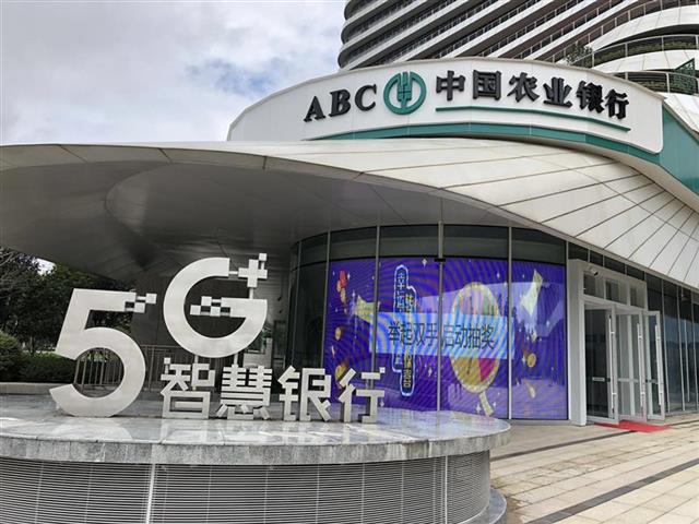 该5G智慧银行网点内设置了多台超级柜台机器,开卡、转账汇款、打印流水、购买理财产品、投资基金、大额现金存取款等均可自助操作。