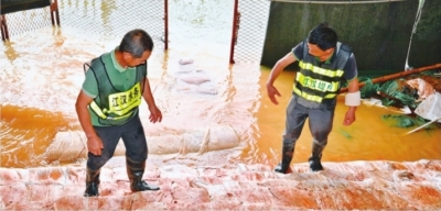 防汛物料一一备齐 保证封堵高度超出江水1米