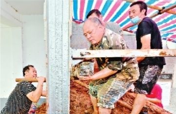 堆放沙袋科学精心 袋口朝内避免江水冲刷