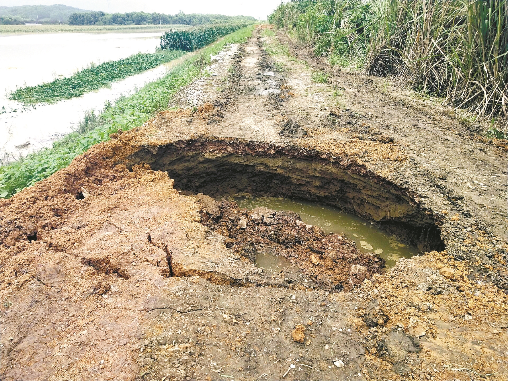 “千万别过去,那边很危险!”当记者赶往现场拍照时,冯爹爹阻止说,河堤很多地方经雨水浸泡后形成了空洞,随时有塌陷的可能。