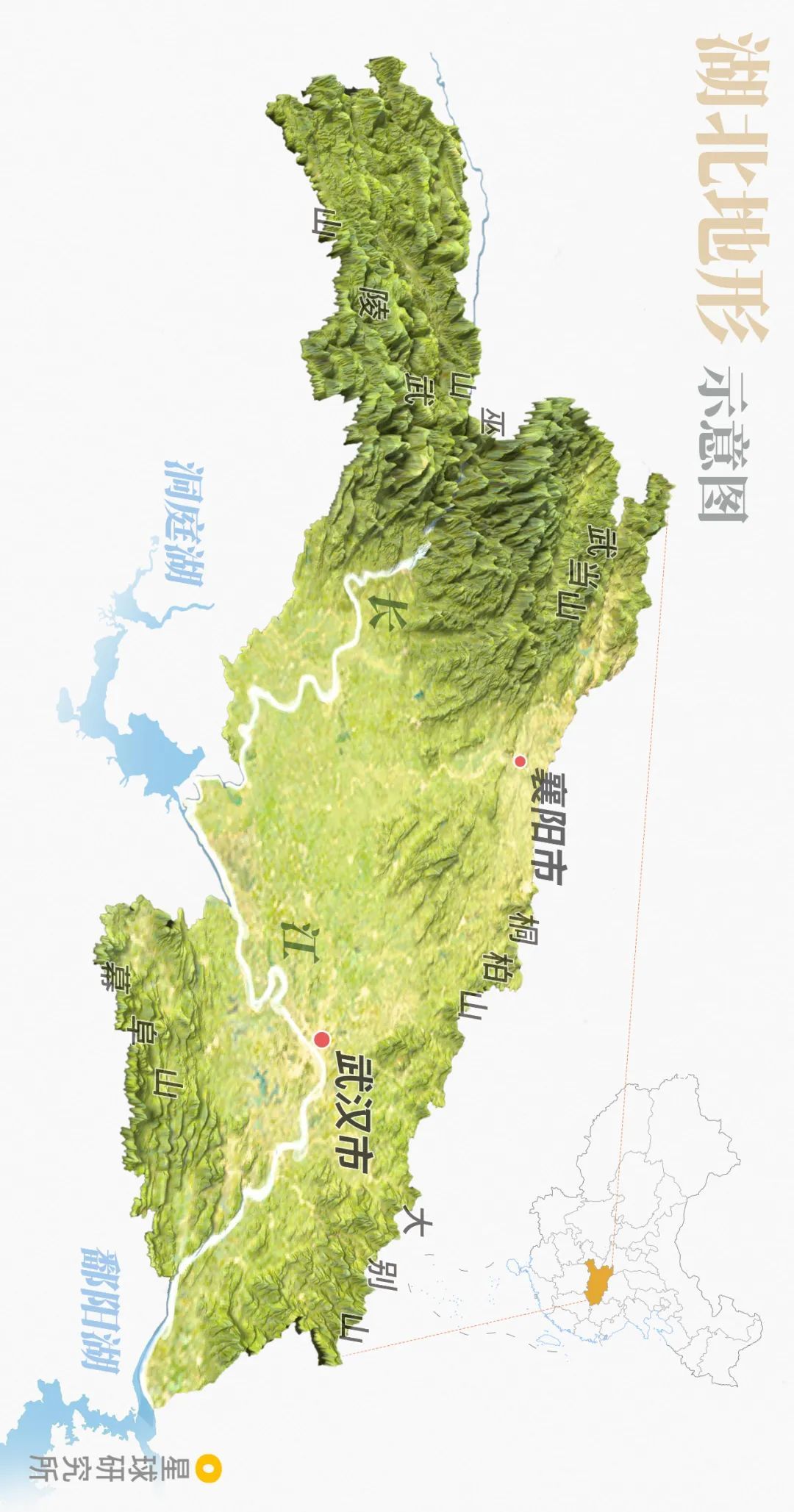 ▲湖北地形示意图。制图@赵榜&陈思琦/星球研究所