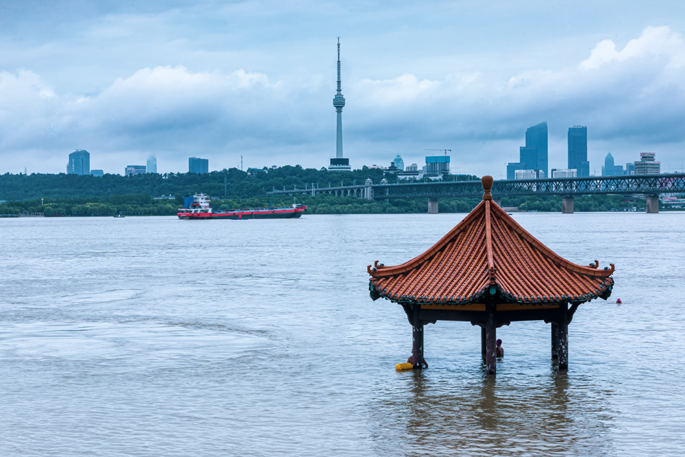 ▲7月6日,武昌江滩凉亭被淹没。图片来源:中国气象局