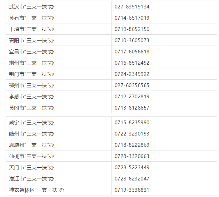 市州、直管市、林区“三支一扶”办咨询电话