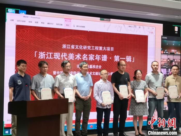 中新网杭州7月10日电 (童笑雨)7月10日,《浙江现代美术名家年谱(第一辑)》编撰推进会在浙江杭州举行。据悉,该项目计划编撰八位浙江现代美术家年谱,分别为黄宾虹、潘天寿、林风眠、常书鸿、张书旂、陆维钊、陈之佛和倪贻德。