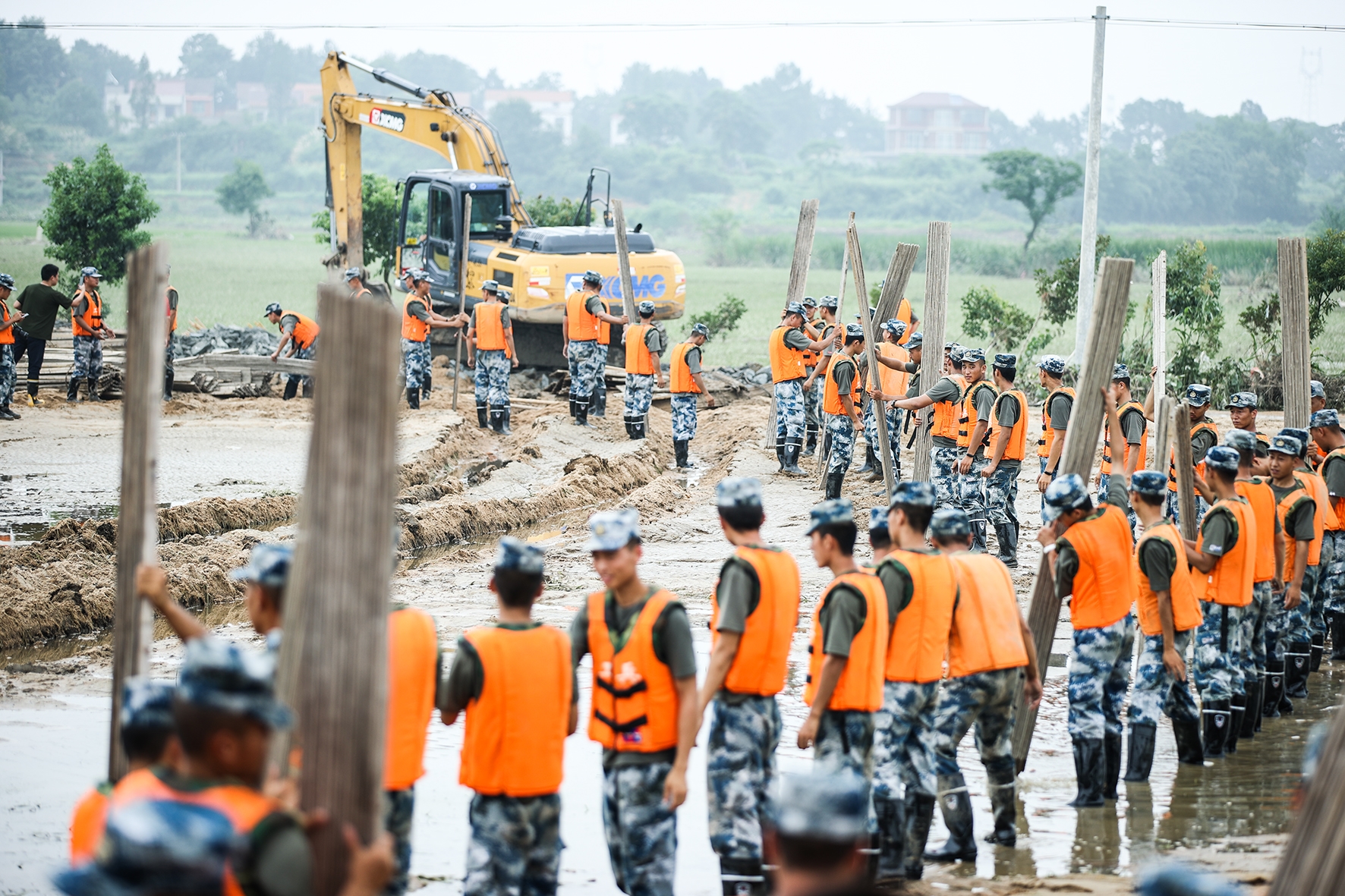 在水利专家的指导下,300余名救援官兵紧急奔赴考田河蔡垸村段,对决口进行封堵,对大堤进行加固。官兵们分为两组展开作业,一组官兵负责运送钢管并在决口位置打桩,另一组官兵紧急装填沙袋并垒起沙墙。其他700余名官兵听令待命,随时做好加入战斗的准备。紧急作业一上午后,官兵们初步垒起了50米长的沙墙,抢险作业初见成效,但任务依然艰巨。截至昨晚记者发稿时,抢险工作仍在紧急进行中。