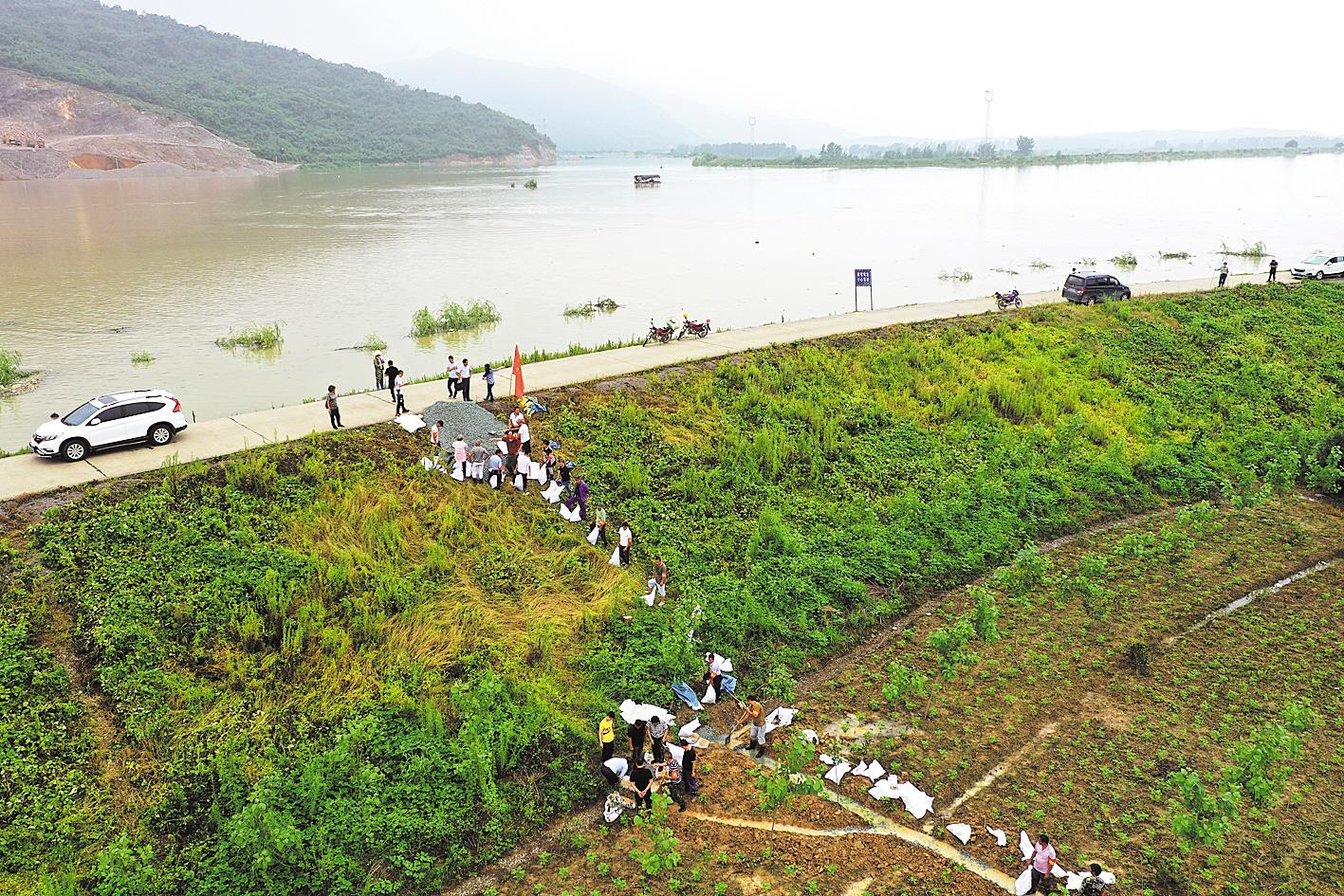 入梅以来,阳新县已出现5次强降雨过程,富河持续高水位运行,多处出现溃口险情。7月9日上午,富河干流率洲管理区出现40米溃口,当地抢险工作仍在继续。