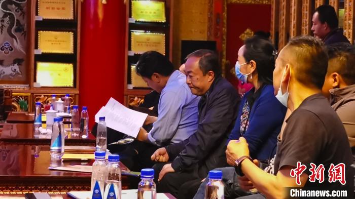 图为7月10日晚,《八廓街北院》主创团队就演出进行探讨。 张伟 摄