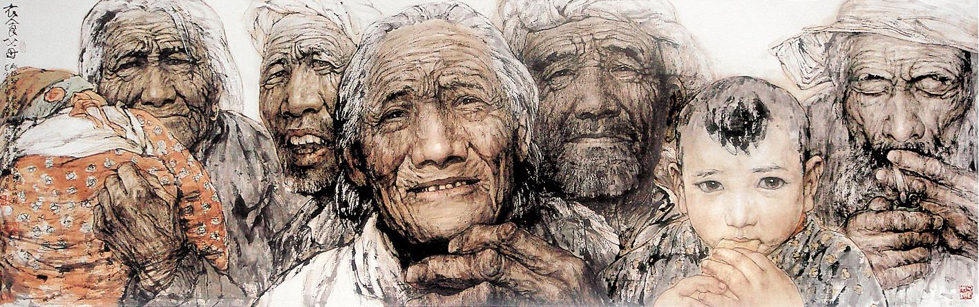 翻开梁岩画册,一幅幅表现太行山区矿工、老农、山民形象的画作,映入眼帘。梁岩生于河北井陉太行山区,16岁开始当矿工,在井陉煤矿从事宣传工作。梁岩说:那段工作经历锻炼了我,画了很多广告、宣传画、壁画,接触水彩、油画、国画。“所以我在创作中国画时,很自然地吸收了西画特点,形成自己水墨人物画画风。”他介绍,在传统中国绘画基础上,借鉴西方素描,以造型传神,同时加强中国画的厚度和分量。