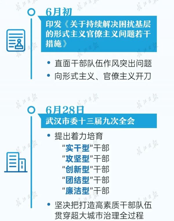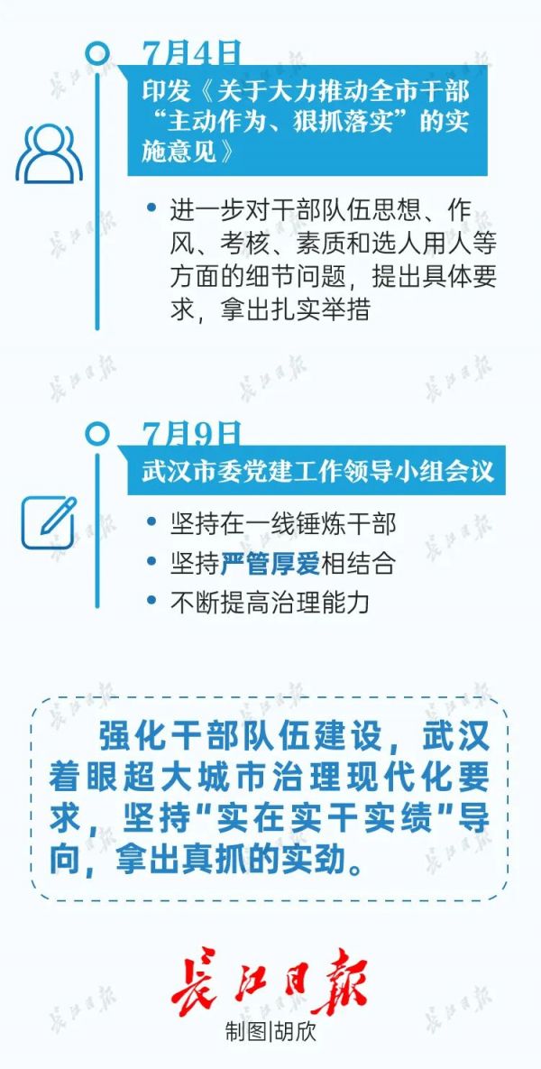“注重将有经验、有点子、能扛事的能将干将,配备到‘一把手’岗位、充实到重要岗位。”7月4日,武汉市委、市政府印发《关于大力推动全市干部“主动作为、狠抓落实”的实施意见》,从站位、责任、目标、监督、考核、培养等多方面对全市干部队伍建设提要求、明方向。