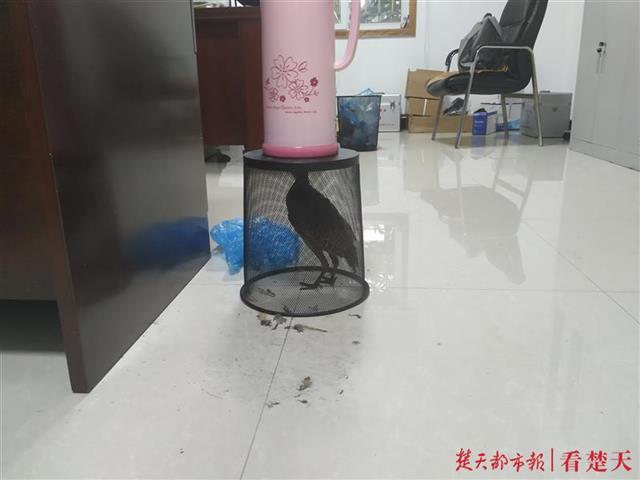 当日下午3时,楚天都市报记者赶到武昌区四美塘路的武汉铁路局武汉物资供应段物资供应中心。胡先生介绍,当日下午1时30分许,他在办公室加班,突然听到走廊传来鸟叫声。他在走廊看到,一只野鸟正在走廊里到处飞来飞去,不时撞到走廊上的透明玻璃。担心野鸟继续撞击玻璃受伤,胡先生找来笼子将野鸟罩住。