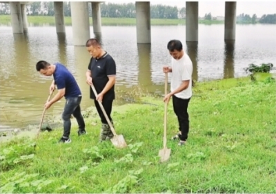 6日开始,周新祥带队上堤检查防汛排涝情况,此后每天都是吃喝睡在大堤上,巡堤、清捞河道杂草,加固管涌点……哪里有防汛任务,哪里就有他的身影。
