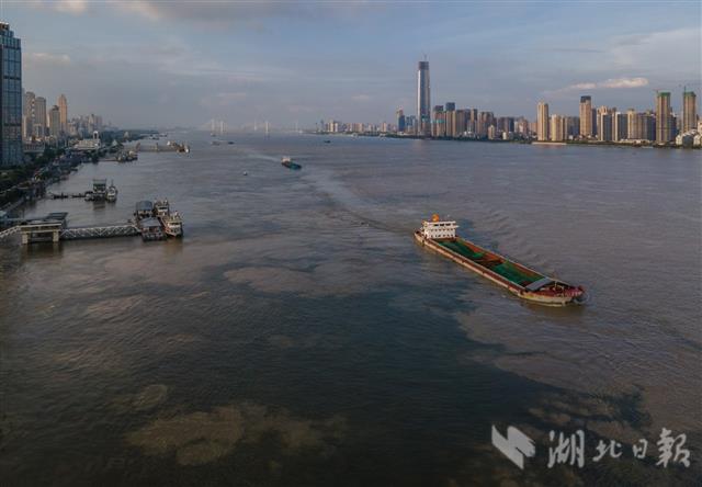 7月13日傍晚,市民走上武汉长江二桥,在人行道上关注长江水位。13日17时,长江干流汉口站水位28.74米,较之前的洪峰水位28.77米有所下降。长江中下游洪水洪峰顺利通过汉口江段。(湖北日报全媒记者 柯皓 实习生 袁佳琪 摄)