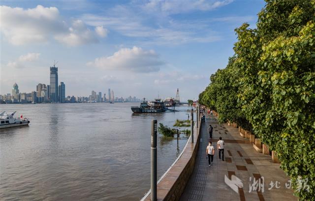 7月13日傍晚,市民在武汉武昌临江大道漫步。