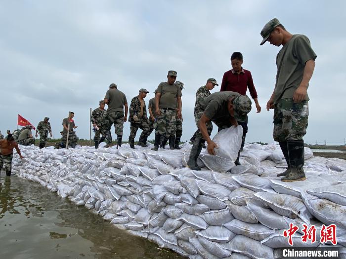 当地村民和民兵近千人组成抢险突击队加筑子堤 周星亮 摄