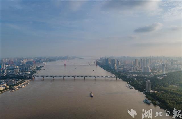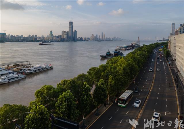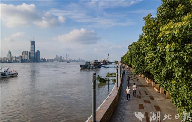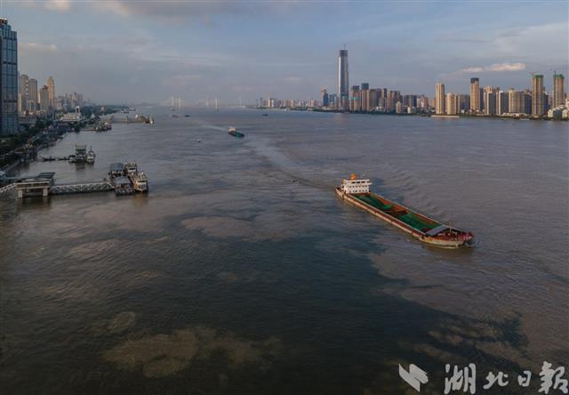 7月13日,船舶长江武汉段航行。13日17时,长江干流汉口站水位28.74米,较之前的洪峰水位28.77米有所下降。长江中下游洪水洪峰顺利通过汉口江段。(湖北日报全媒记者 柯皓 实习生 袁佳琪 摄)