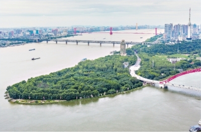 江水在平均海拔为24米的武汉城区“头顶”上奔腾,长江大堤巍然屹立,英雄的城市安然。
