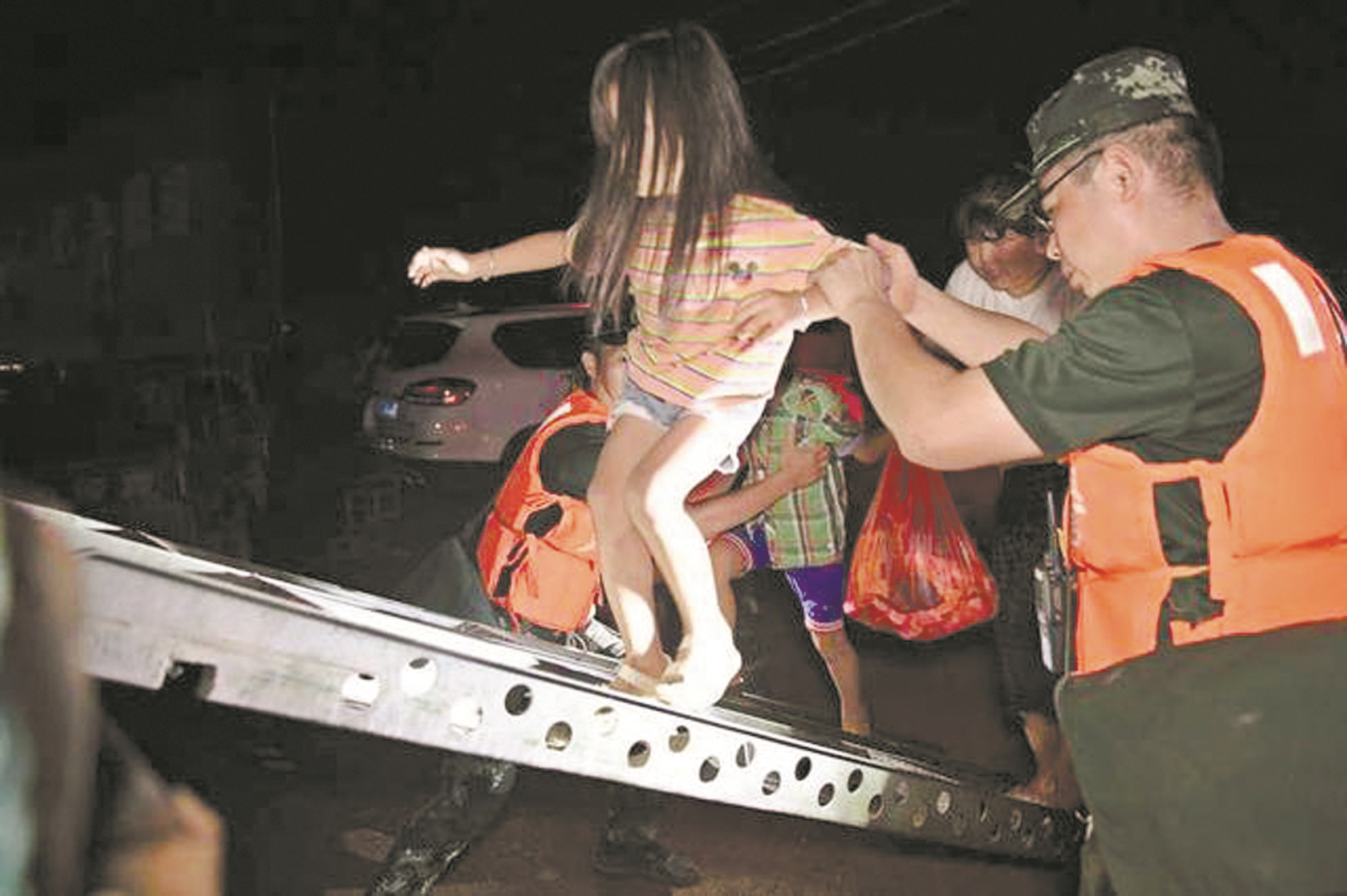 12日晚,武警官兵在永修县转移村民