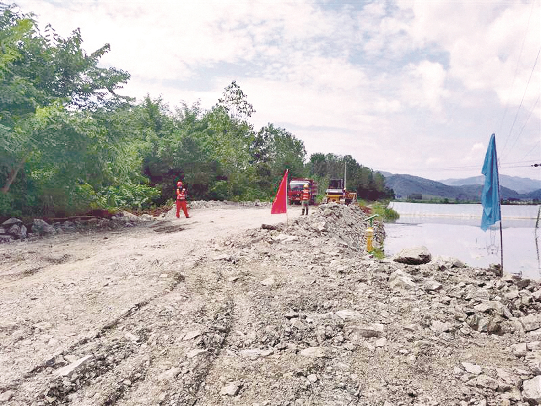 由于公路至万家村溃口处约有3.5公里,填堵工程的作业设备和车辆无法到达溃口处。于是,需要先从公路边至溃口处加建一条高2.5米、宽4米、长3.5公里的临时公路,与原堤坝形成一条宽8米的加固堤坝。“一旦临时公路全面开辟好,填堵溃口就容易多了。”阳新县应急局局长明正良说,整个工程约需使用石料8万余方。