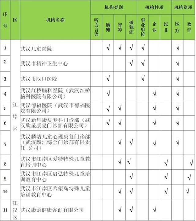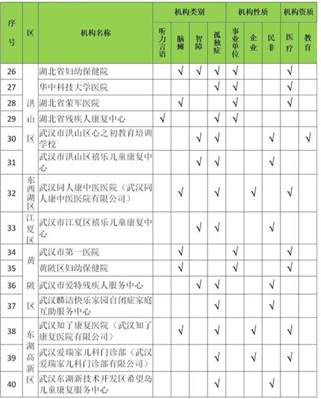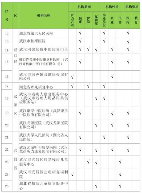 为了贯彻落实残疾儿童康复救助制度,保障有康复需求的残疾儿童得到基本康复服务,武汉市残联会同市卫健委、市教育局、市民政局、市医保局、市市场监管局,对各区按公开择优原则确定上报的残疾儿童定点康复机构进行了复核确认,确定2020年武汉市残疾儿童定点康复机构。