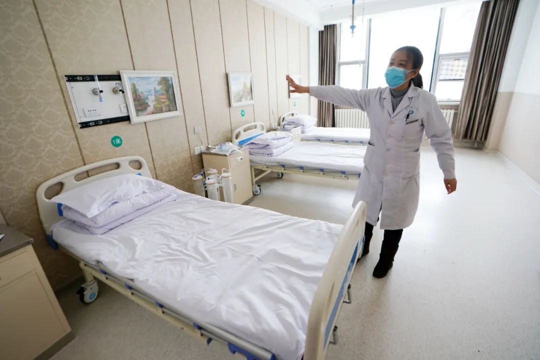 ▲资料图片:2月15日,工作人员正在介绍改建完工的黑龙江省疫情防控备用集中救治医院病房。(新华社)