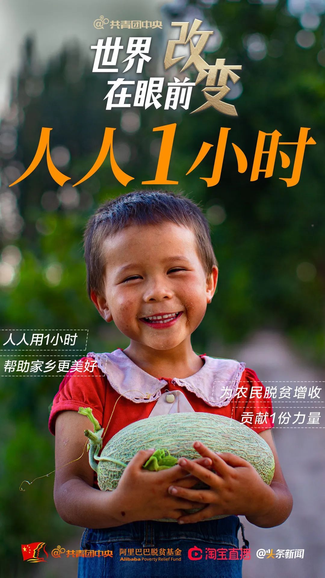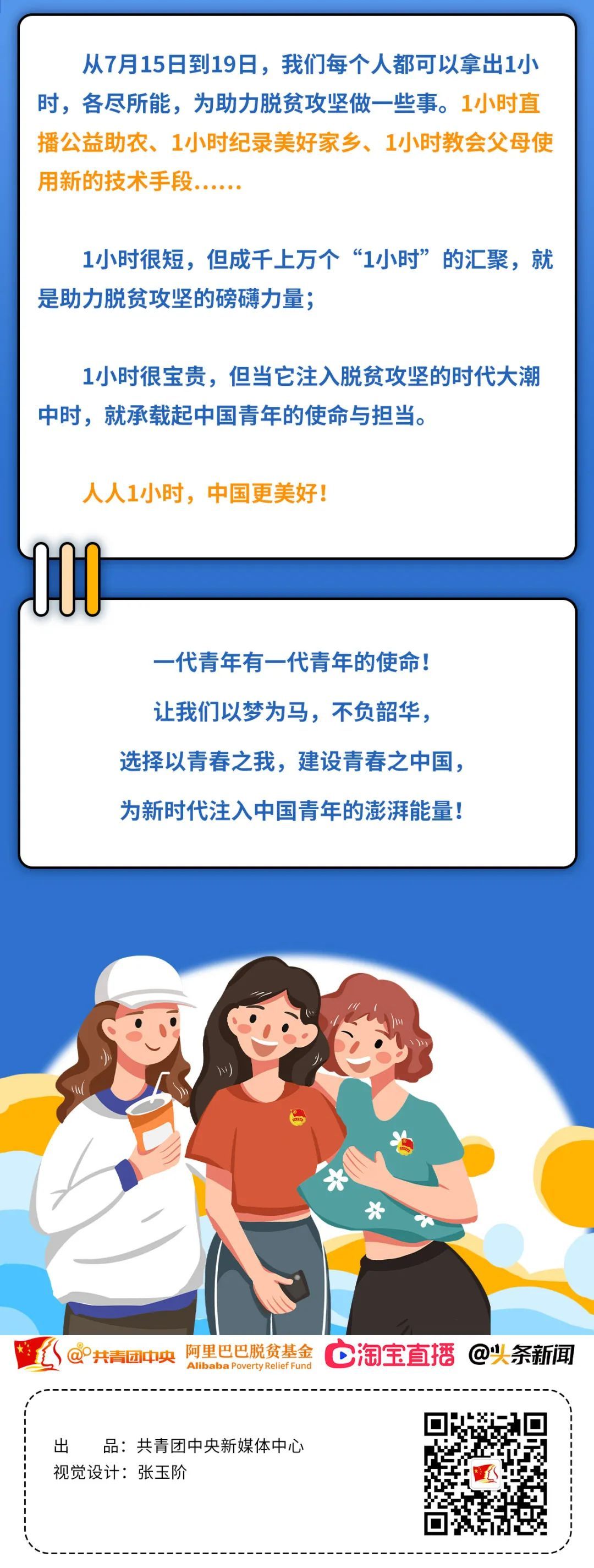 从7月15日到19日,我们每个人都可以拿出1小时,各尽所能,为助力脱贫攻坚做一些事。1小时直播公益助农、1小时纪录美好家乡、1小时教会父母使用新的技术手段……