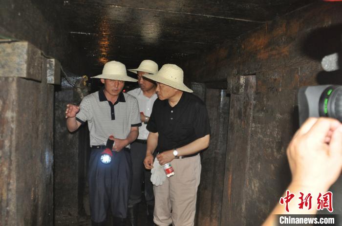 资料图:工作人员向媒体记者介绍定陶汉墓的发掘和保护工作。 沙见龙 摄