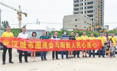 武汉城市圈商会与阳新县接收捐赠物资人员合影。