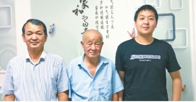 周红胜(左)、周松林(中)、周家河(右)祖孙三代在家中合影。