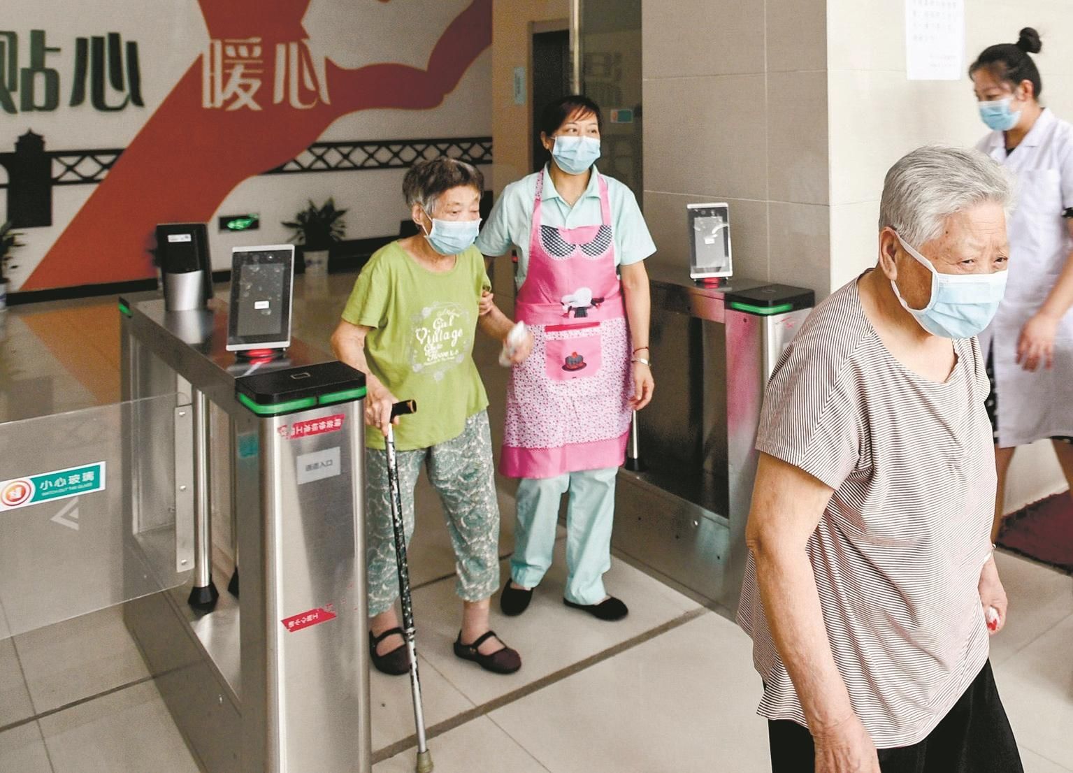 硚口区社会福利院的护工在陪护老人