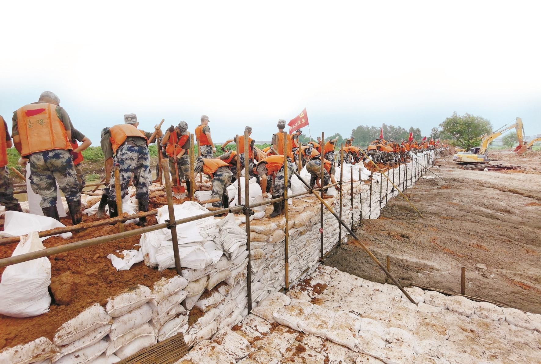 在胡良花家所在的黄梅考田河畔,先后云集了中部战区陆军某舟桥旅、空降兵某旅、武警湖北总队机动支队等抢险劲旅。在武穴抢险现场,中部战区陆军某舟桥旅的“00后”战士们,刚从一线撤下来,就倚靠着沾满泥水的砂石袋沉沉睡去。