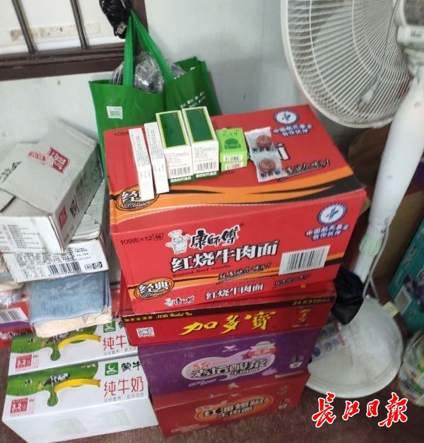 考虑到武汉夏季夜间高温且蚊虫较多,夜间加餐不方便等因素,程瑾将藿香正气液、清凉油、加多宝、方便面等物资送到防汛值守点。“我准备了一百多份,会送到沿江的每个防汛值守点位上去,”程瑾一边搬防汛物资一边告诉记者。