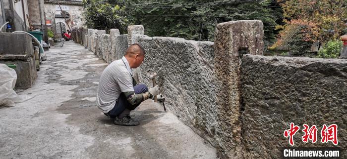 中新网合肥7月15日电 (刘浩 盛红兵)15日,安徽省休宁县鹤城乡日前因山洪损毁的徽饶古道、古石栏杆修复工程竣工。